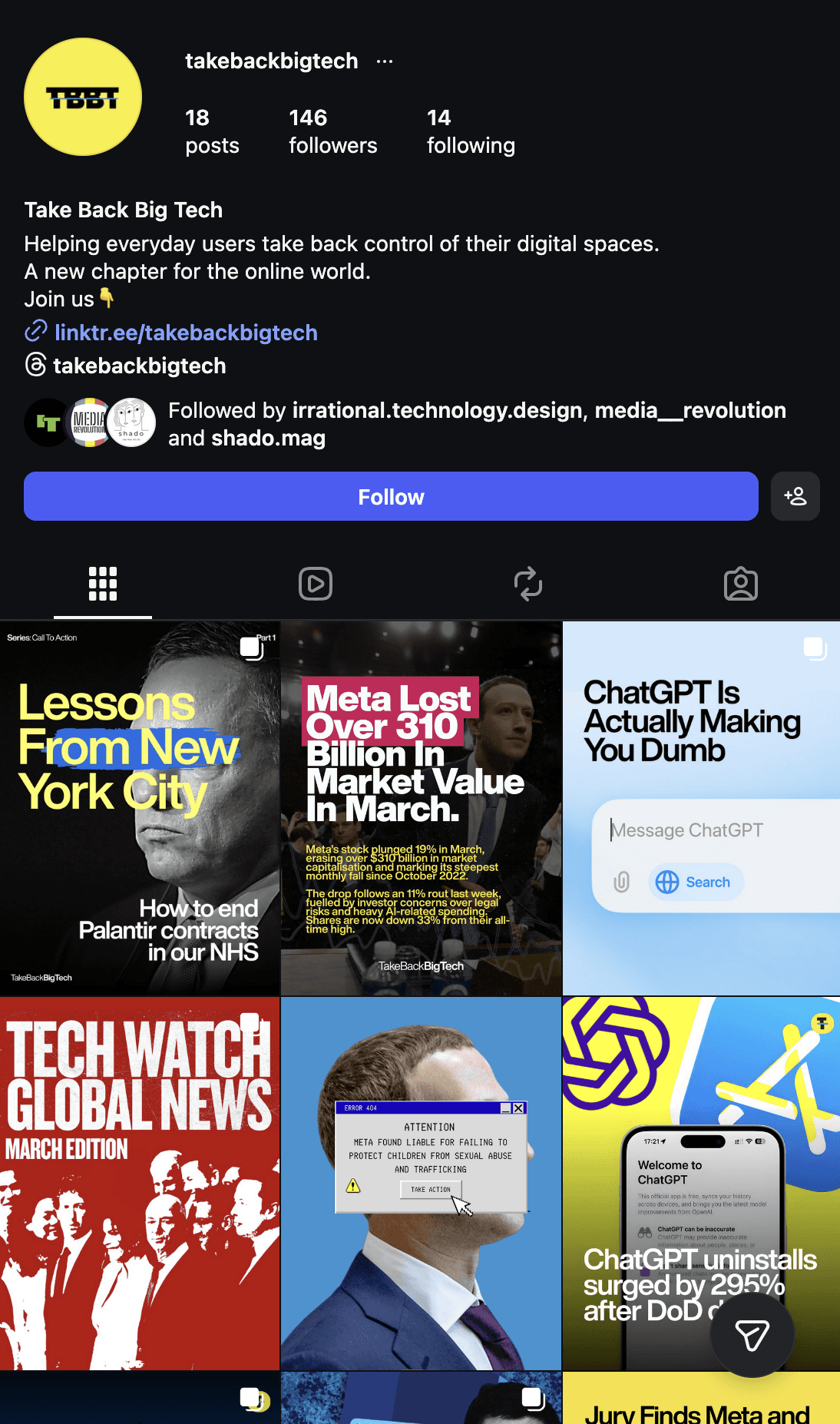 There's no shortage of organisations criticising Big Tech. The problem is that most of them look and sound like the institutions they're trying to challenge — clean, restrained, legible only to people already inside the policy conversation. Take Back Big Tech needed to operate in a different register entirely. The campaign's audience is the general public, people who feel the effects of platform power in their daily lives but have no obvious route to doing anything about it. The brief was to make the problem feel urgent, winnable, and worth showing up for.